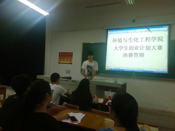 (通讯员:周娟、黄言华 周闻峥)4月28日,环境与生化工程学院“大学生创业计划大赛决赛答辩”于教学楼3413圆满落幕。此次大赛积极响应我校号召共话创新创业,不仅能够帮助学生进一步明确创业方向、提高创业本领,营造创业氛围,更多的是带动学生投身创业大潮之中。大赛初期,各个班级精心准备,层层筛选,最初有十余支参赛团队,通过初赛的选拔,有5支团队入围决赛,在现场为大家展示团队的智慧结晶。各团队主要通过项目概述、竞争优势、市场分析、财务分析、风险分析等几个角度对自己的项目进行阐述。