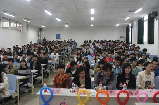 (通讯员:陈晶)4月3日下午2:00,2013级环化学子齐聚一堂,在4212教室隆重举办“中国梦中国年,共话新年新成长”PPT演讲总决赛。人文学院副院长叶蓉、科研处易小芳老师、学生科长周娅担任本次教师评委,此外,我们还邀请到了第一届PPT参赛学生代表、2010级学生娄明和2013级学生家长代表喻晶一起担任特邀评委。我院院长叶汉英、戴永清书记、副院长吴雨龙、团总支书记刘怡静和所有辅导员老师们出席会议。