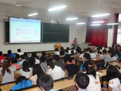 本次讲座的主题是《情商与求职》,讲座开始时,李教授首先用幽默而富有内涵的话语营造了一个轻松愉悦的氛围,巧妙引用鲁迅先生的作品《彷徨》、《呐喊》与《伤逝》描述同学们的三年大学生涯,引起同学们的兴趣与好奇,然后仔细讲解了关于情商(EQ)和逆境商(AQ)的正确理解与合理运用,从不同角度运用多个经典案例着重谈论了情商的重要性,并讲授了一些关于如何提升情商的有效方法。讲完情商接下来李教授又讲述了关于情商对求职的重要性以及求职技巧,让同学们对即将面对的未知世界少了一份迷茫,多了一份自信。面对即将步入职场生活的同学,李教授还详细讲解了求职简历的制作要点,指出每一个人的简历都必须是为自己量身定做,根据侧重点不同,求职岗位不同时还需要制作不同简历,切记勿繁琐冗杂。然后向大家讲解了极为实际有用的常见职场相处技巧,并且举具体实例向同学们很好的阐述了情商的定义,以及将其用到恰到好处时的重要性,整个讲解过程中语言生动幽默,同学们认真做笔记,全神贯注,赞不绝口。