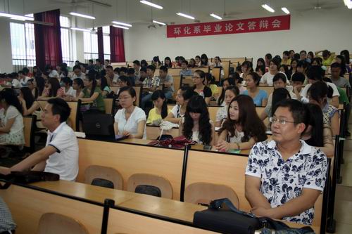 (通讯员:周娅)5月25日上午9点,环化系2010级毕业论文答辩在1号教学楼1331教室如期展开,来自本系5个专业的8名优秀毕业生代表在此进行公开答辩,近200名2010级毕业生和近50名2011级学生代表现场观摩。答辩会由我系实习实训室主任阮建兵老师主持,由5个专业的专业带头人担当答辩评委,系领导全部到场坐镇指导。