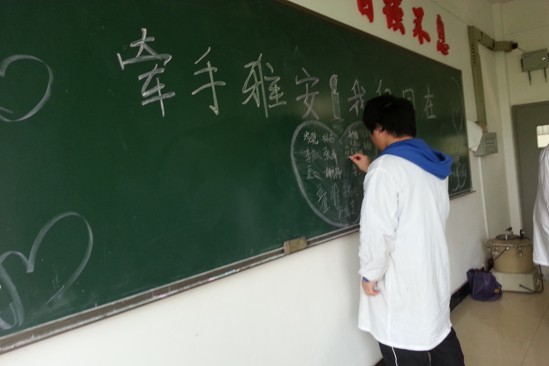 灾难发生后,环境与生化工程系学子情牵灾区,时刻关注灾情,QQ签名、微博均更新至“芦山时间”。接到院团委倡议,4月23日,我系各团支部纷纷开展“关注雅安,祝福雅安,我们在一起”的主题团日活动。大家以集体默哀、观看雅安最新视频、致祝福等多种形式表达自己对灾区人民的牵挂,发扬“一方有难,八方支援”的互帮互助精神,为灾区积极捐款,奉献爱心,略尽自己的绵薄之力。