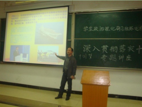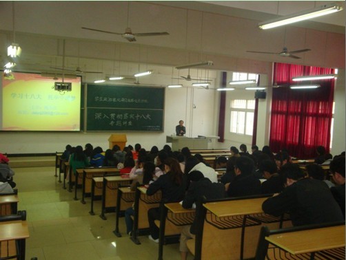 (通讯员:周娅)4月10日晚5点30,环境与生化工程系政研社课堂上,系党总支书记戴永清亲自上课,为学生带来《学习十八大,托举中国梦》的讲座,用清晰的思路,详实的图文给大家诠释了中国梦的深层含义,号召广大青年用自己的青春力量去大胆追梦。