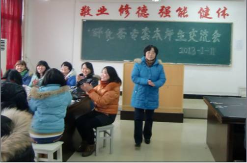2013年1月11号下午,在1312教室我环境与生化工程系召开了专套本师生交流会。出席交流的有我系主任叶汉英老师、学生科长蔡旭东老师、教研室主任候永胜老师、专套本教学秘书李莹老师、专套本班主任周闻峥和陈晶老师,及来自药学与药品营销、生物工程和建筑经济与管理3个专套本专业同学,交流会在热烈而轻松的气氛下进行。