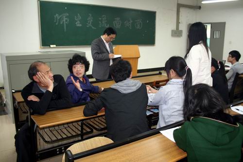 (通讯员:高颖)2012年4月12日,环化系在教学楼1201教室组织召开了“师生交流面对面”的学生代表座谈会。旨在全面了解学生的学习及思想生活状况,解决教与学中的实际问题,营造良好的育人环境,来自全系两个年级17个班的51名学生代表参加了座谈会。学院督导倪曼、系主任叶汉英、金学平、吴雨龙、书记戴永清及全体教师出席会议,并听取了学生代表的发言。