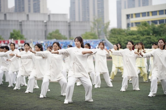 尤为值得一提的是,本届运动会新增了传统体育项目“八段锦”集体展演。我院精心选拔并组织了二十名同学参与其中。他们身着统一服装,动作整齐划一,刚柔并济,行云流水,将传统养生文化的精髓与现代体育的活力完美融合,不仅为运动会增添了一道独特的文化风景线,也充分展现了我院学生积极传承中华优秀传统文化、追求身心和谐发展的健康理念,赢得了现场观众和评委的一致好评。