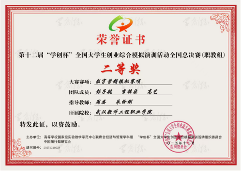 图3 武软营销16队获得职教组全国二等奖