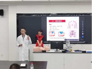 本次授课采取集中理论授课和分组实操练习结合的方式进行,生命健康学院李倩、陈春霞、孟明翔老师用专业的理论知识和典型的实际案例,向参加培训的实训教师们认真讲解基本的急救知识、心肺复苏术、海姆立克急救法的原理和应用范围,详细演示心脏按压、人工呼吸、海姆立克急救法的操作手法和要点。