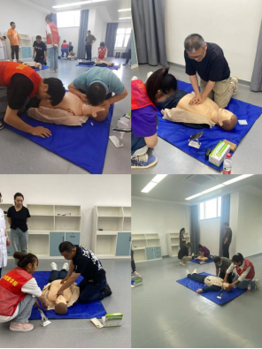 在急救实操环节,参训老师们积极踊跃地当起了“急救员”。在志愿者们的演示和引导下,老师们利用人体模型进行模拟演练,志愿者根据人体模型配备的手机小程序,时刻关注人体模型接受到的按压点、按压力度、气体呼入等救援数据,并根据相关数据对老师们的动作和力度进行指导或调整。参加培训的老师们从第一次按压模拟人时的笨拙、小心翼翼到后来的熟练操作、充满信心,逐渐掌握了面对心脏呼吸骤停的伤员,应当如何判断病情或伤情,如何排除气道异物、如何进行心肺复苏等知识,对心肺复苏的重点和具体流程有了系统的认识。活动现场气氛活跃,老师们积极向志愿者们提问交流,亲身体验现场急救基本操作,学习氛围异常浓烈。