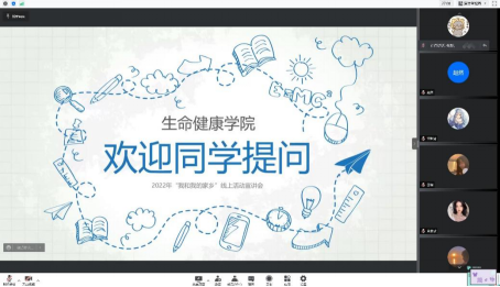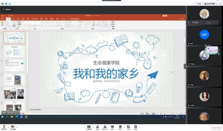 (通讯员:张彤)为了丰富我院学生居家上网课的生活,激发同学们的爱家爱国情怀,我院学生科策划了“我和我的家乡”主题学生活动。为了确保动员学生参与,确保活动效果,我院于2022年3月25日晚7点,在线上召开宣讲会,参加本次线上宣讲活动的有生命健康学院党总支副书记刘怡静、学生科科长唐圆、团总支书记陈晶、以及2020级、2021级辅导员。宣讲会有400余名学生参与。