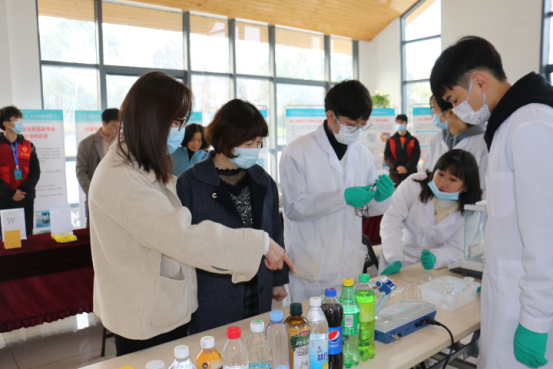 展览分为五大板块,食品药品与健康展区主要展示了营养基础知识、科学饮食法、防控高血脂、高血压、高血糖的饮食与保健常识,在这里我们可以检测身体健康状况,血压、血糖、体脂率等各项指标,还可以品尝减肥茶、纤维小饼干,领略人参、松茸、灵芝药品的魅力;3D虚拟仿真展区展示了分析、食品、药品、化工四个专业在教学和实践中的应用,有趣又有料;化工与健康展区展示了化工新材料万能水凝胶、碳纤维复合材料、有机半导体材料在各行各业的应用;防疫与健康展区科普了从石油到口罩是如何诞生的以及核酸检测的原理与应用;检测与健康展区向大家展示了检测饮用水质、室内甲醛,水中成分以及溶液中的酸碱度各是多少,详细地科普了哪种含量和程度对人体健康是最有好处的。
