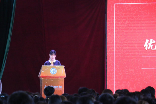 最后,学院党总支李红艳书记进行了激励人心的讲话,表达了对新生热烈的欢迎,介绍了学校和学院情况,分享了我校近年来取得的辉煌成绩,并从坚定信念跟党走、刻苦学习练技能、主动参与展潜能、自信阳光迎挑战、自律自强塑人格五个方面对新生进行了谆谆教导并提出殷切期望。