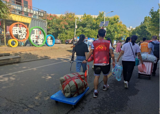 志愿者一早就在各个点位等候新生到来,热情地为新生提供引导和帮助,带领新生到学院报到点,并提供信息咨询、行李搬运等帮助。让刚到学校的新生们感到“家”的温馨。在报到处,志愿者仔细为新生办理身份核验、材料收集、信息登记等报到手续,各个流程清晰有序。学院还为每名新生准备了入学小礼品,留作纪念。