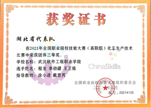 (通信员戴思芮涂小进)“大赛点亮人生,技能改变命运”。2021年6月28-30日,全国职业院校技能大赛(高职组)“化工生产技术”赛项在宁夏工商职业技术学院举行,我校代表队和来自全国高职院校的26支代表队共78名参赛选手同场竞技,终获团体三等奖。