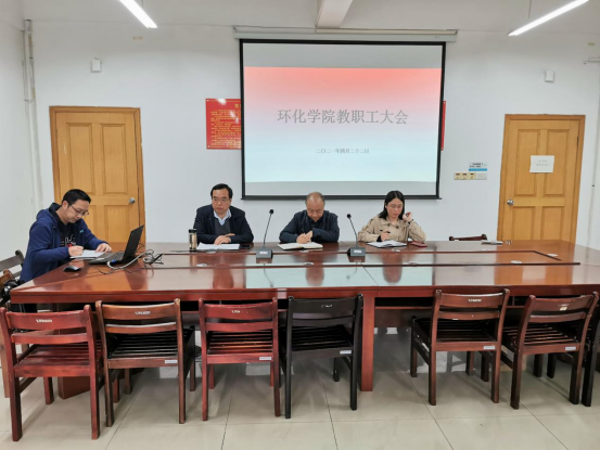 (通讯员:张进 摄影:罗中昊)2021年4月22日下午,学院在综合楼402会议室召开教职工大会,会议由金学平院长主持,吴雨龙副院长、刘怡静副书记及在校全体教职工参加。