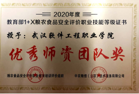 粮农食品安全评价职业教育培训评价组织通过线上会议举办了“1+X粮农食品安全评价职业技能等级证书2020年工作总结暨表彰大会”。会上,武汉软件工程职业学院连获“领军院校奖”、“优秀师资团队奖”和“优秀教学奖”三项殊荣,我校在“1+X粮农食品安全评价职业技能等级证书”推广和落地过程中做出的积极贡献得到了充分肯定。