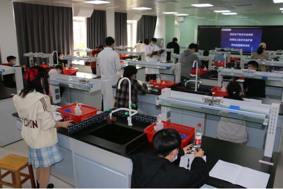 来自湖北省内的144名考生顺利完成考试,其中应用化工技术专业考生66名,药品生产技术专业考生78名。此次考试共分文化测试和技能测试两大类,技能测试除应会考试之外还设有专业技能面试。