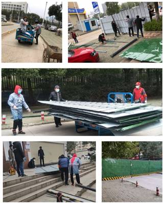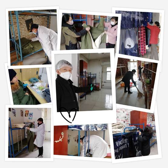 后来得知是政府征用高校改造为定点医疗点,需要征用我校1000张(后来扩增到2000张)作为轻症床位。而当时也正值寒假,学生基本都回家过春节。疫情当前,急需教职工清理宿舍。时间紧任务重,还要保证每一间宿舍干净整洁,有些老师连续作战几个通宵,我院戴书记、金院长迅速安排工作,带头清扫房间,书记都累感冒了,也毫无怨言。终于,连续几天在老师们的全力协助下,顺利交付第一项任务。