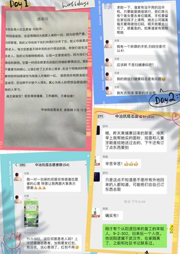 在防疫过程中,也有小区志愿者主动报名,有的从外地回来刚刚隔离满14天就要求参与防疫工作,让我们倍加感动。我们之前都素不相识,但大家聚沙成塔,为同一个目标走到一起,做着平凡而有意义的事情。感谢所有一同战斗的战友们,因为有你们,工作再辛苦,也有力量。