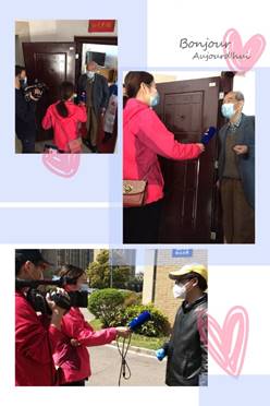 社区人员和志愿者辛勤工作引来江夏电视台关注,电视台采访独居老人和志愿者。