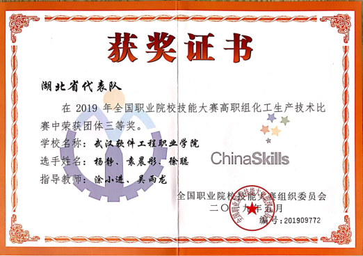 我校在此次大赛中获得预期佳绩,展示了指导教师和参赛选手们过硬的专业技能,彰显了我院的办学水平。我们将以此为新的起点,以赛促学、以赛促教、以赛促改,不断提高教师的教学能力,提升专业建设水平,继续把应用化工技术专业建设成优质的湖北省特色专业。