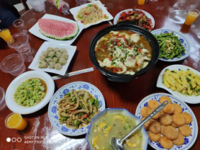 在实习结束之际,公司还特意准备了丰盛的饭菜为我们践行,我们在此非常感谢新蓝天公司给予我们学习、生活上的支持和帮助!今后我们将更加努力的学习,以便将来更好地服务于社会。