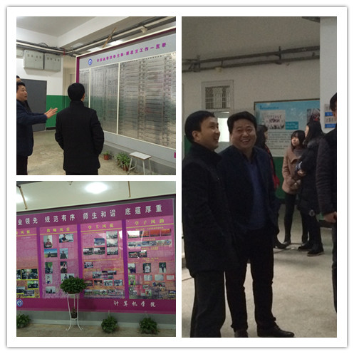 随后,陈书记邀请大家共同参观了计算机学院学生科辅导员办公室和团总支办公室,办公室工作环境及学生科工作制度得到了大家的一致好评。