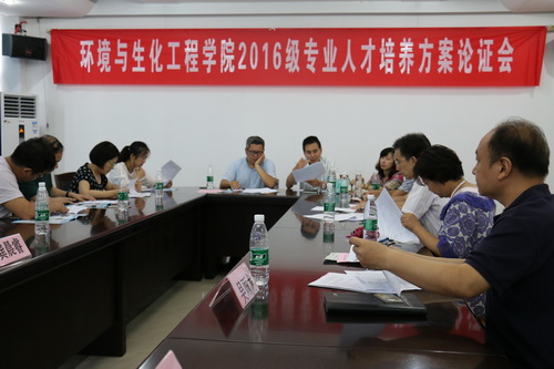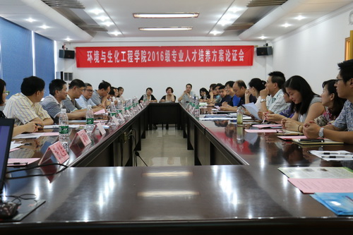 6月29日下午,清风徐徐,阳光灿烂,环境与生化工程学院邀请湖北省化学化工学会、华中科技大学同济医学院、湖北省疾病控制中心、湖北大学、武汉市英纳氏药业、武汉华正环境检测、武汉净澜检测、武汉爱华制药等18个单位的行业企业高校专家来到学校,在综合楼三楼会议室与学院的专业带头人、骨干教师一起共同论证2016年专业人才培养方案。