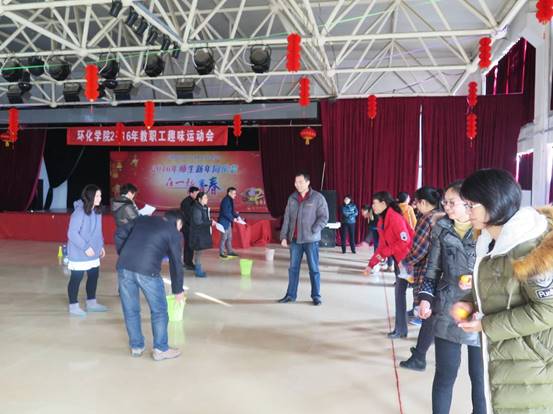 (通讯员 刘琪坤)2016年1月18日,环化学院分工会借用学习周的宝贵时间,利用中午的好时光,在综合楼四楼多功能厅,举办了一场教职工趣味运动会。学期岁末,对于完成骨干校验收,辛勤工作、忙忙碌碌一年的教职工来说,这是一次难得的放松机会。