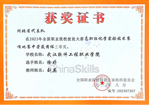 (通讯员:刘英)8月20日至23日2023年全国职业院校技能大赛(高职组)“化学实验技术”赛项(师生同赛)在呼和浩特市内蒙古化工职业学院举行。共有来自全国30个省、自治区、直辖市和新疆生产建设兵团的60支代表队、120名师生同台切磋技艺,共展职教风采。经过激烈角逐,由生命健康学院分析检验技术专业刘英老师和化工2102班徐婷同学组成的参赛队获大赛团体三等奖。