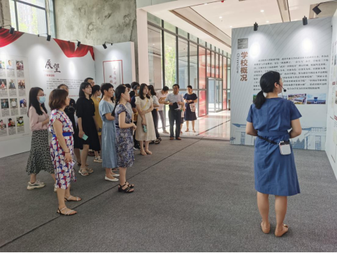 (通讯员:张进 摄影:涂小进)7月15日上午9点,学院全体党员教职工在李红艳书记的带领下,到学校创新创业大楼一楼展陈厅,参观“学党史 知党情 跟党走”校史展览。