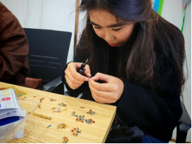 座谈会后,一场别开生面的“非遗手工——凤冠制作”体验活动将现场气氛推向高潮。在老师的悉心指导下,各族学子围坐协作,细心剪裁、巧手拼接,在亲手实践中感受中华传统技艺的魅力。这不仅是一场文化体验,更成为各民族学生之间情感联结与团队精神的生动写照。