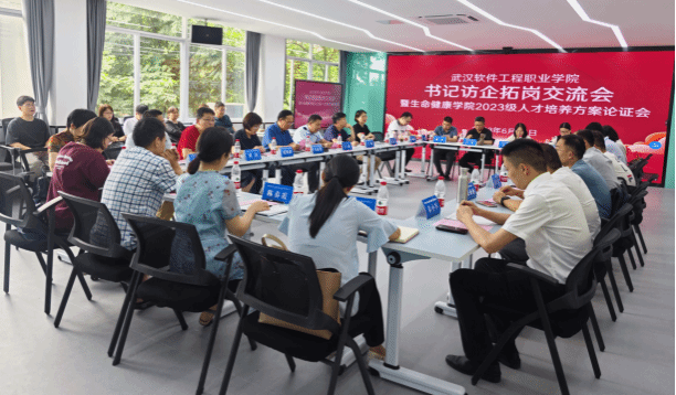 为全面贯彻教育部办公厅《关于开展全国高校书记校长访企拓岗促就业专项行动的通知》精神,深入落实高校毕业生就业工作“一把手”工程,促进毕业生更充分更高质量就业,生命健康学院访企拓岗促就业行动持续发力,校党委书记马蜂、国际学院院长王麟参与生命健康学院书记访企拓岗交流会暨2023级人才培养方案论证会,参会的十家企业分别是:中韩(武汉)石油化工有限公司、湖北省阿克瑞德检验检测有限公司、武汉科前生物股份有限公司、武汉有机实业股份有限公司、武汉联德化学品有限公司、湖北嫦娥药业股份有限公司、武汉华正环境检测技术有限公司、武汉仟吉食品有限公司、蒙牛高科乳制品武汉有限责任公司、湖北益丰大药房连锁股份有限公司。生命健康学院院长吴雨龙,副院长魏来、各教研室主任、专业带头人、骨干教师共计30余人参会。