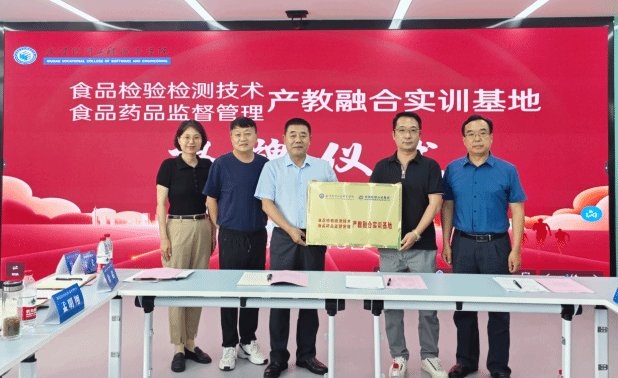 交流会现场举行了产教融合实训基地揭牌仪式。在生命健康学院和湖北省阿克瑞德检验检测有限公司共同努力搭建下,食品检验检测技术、食品药品监督管理产教融合实训基地正式成立,马蜂书记、阿克瑞德王大为董事长、王麟院长共同为新实训基地揭牌。