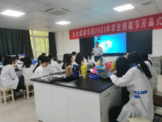 开幕式上,吴院长介绍了本次技能节开展的背景和目的,动员同学们积极参加;希望同学们都能学好专业,练就本领,在参与技能节的过程中提高技能意识,锻炼动手能力,寄语同学们技能点亮生活,成就精彩人生。刘怡静副书记表示,学生技能节是我院重点品牌特色活动之一,是人才培养工程的重要载体,希望同学们能充分展示技能,将所学理论知识应用在实验操作中,切磋技艺,以最佳的状态迎接比赛,争创佳绩。最后,刘怡静副书记宣布生命健康学院2023年技能节正式启动,启动仪式在热烈的氛围和同学们的积极参与中结束。
