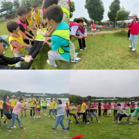 接下来教练组织同学们开展了“绳子运球”、“编绳网”、“拔河”等活动,大家在游戏过程中相互配合,相互帮助,一起协作,切实体会沟通与协作对整个团队的重要意义,作为一个团队一步步地成长、一点点地进步,参加本次活动的老师们也纷纷加入学生队伍,师生并肩作战,增强师生之间的情谊。