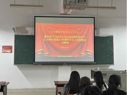 (通讯员:唐昊天陈晶摄影:马金山)2022年5月10日上午,庆祝中国共产主义青年团成立100周年大会在北京人民大会堂举行,习近平总书记出席大会并发表重要讲话。5月14日下午,生命健康学院团总支学生会干部在3412教室集中观看重播,认真学习领会习总书记重要讲话精神。习总书记振奋人心的讲话,化作一股浓浓的爱国热情持续激荡,同学们倍受鼓舞、反响热烈。