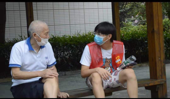 邓慧雅同学说:“我第一天来的时候不知所措,没想到他们的生活这样枯燥,其中黄奶奶给我的印象很深,她虽然眼睛不好,但是她很乐观,每天都开开心心的,我每天都会陪她聊聊天。”