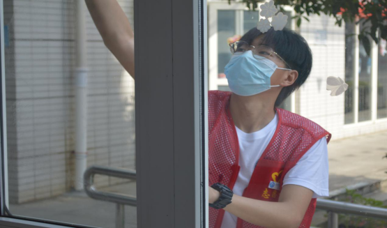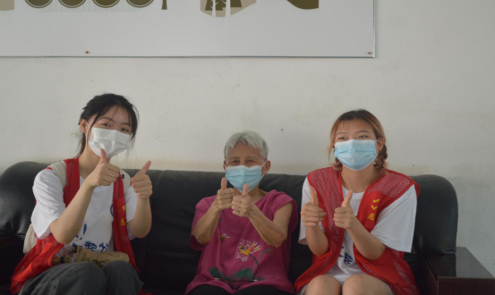 李享同学说:“每天都很热,虽然每天很早我们就去了,但是汗水还是会止不住地流。我们也没有一位同学说过放弃,因为我们是一个团队,我们少去一个,那些老人就少一份关心。”