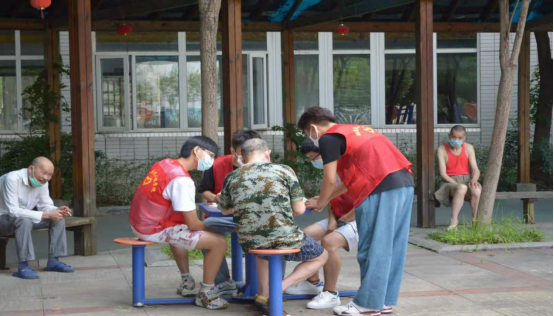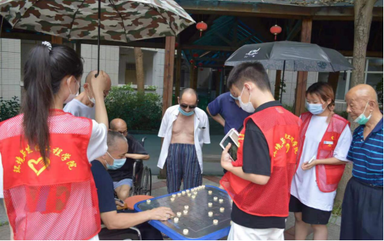 炎炎夏日,毫无畏惧。7月6日上午8点,志愿者们准时到达福利院,与负责人简单的接洽之后,便开始工作。刚进院,便看见老人们正在院子里乘凉,老人们用温暖的笑容欢迎志愿者们的到来。福利院里大多都是孤寡老人,患有生理疾病,行动不便、年龄偏大。他们生活很简单,没有什么娱乐,加上疫情他们已经一年没有出过福利院的大门,似乎已经忘记外面的世界了。鉴于老人们生活的现状,志愿者们把活动安排得很细致,包括陪老人聊天、表演舞蹈、相声、小品、给老人讲故事、给老人按摩、陪老人玩桌游、玩益智游戏等等。为了使老人可以更方便的记住大家的名字,团队还专门定制了胸牌。