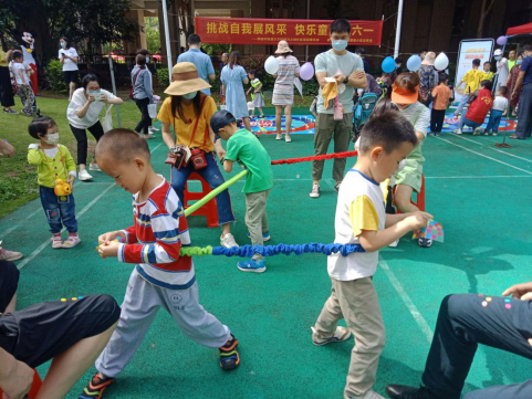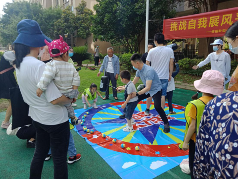 活动广场上设有手工鱼、主题绘画、填色涂鸦三项活动,小朋友们尽情地发挥自己的想象力;篮球场设有飞标、抬西瓜、揪尾巴三项活动,小朋友们激烈追逐,在欢声笑语中体验乐趣;在羽毛球场设有东西南北跑和抢球大作战两项活动,这类活动更加注重亲子协作,小朋友与家长共同努力完成挑战。