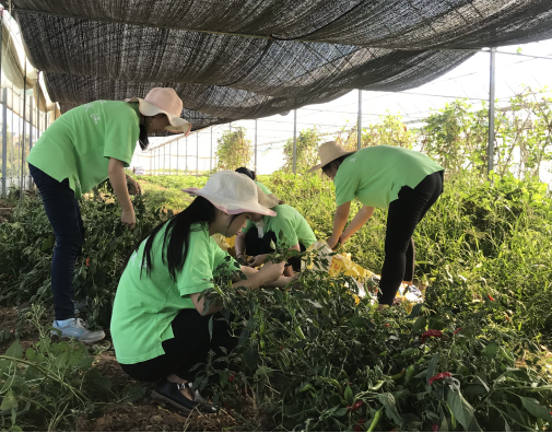 同学们协助菜农采摘辣椒