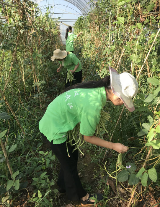 同学们协助菜农采摘豇豆