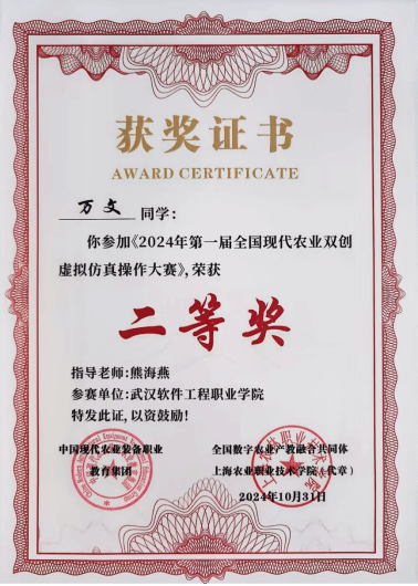 2024 第一届全国现代农业双创虚拟仿真操作大赛,二等奖