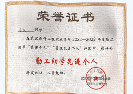 2023 武汉软件工程职业学院2002-2023年度勤工助学先进个人