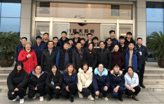 (通讯员:吴雨龙;摄影:宗珊)2018年12月19日,我校环境与生化工程学院与湖北新蓝天新材料股份有限公司合作共建“厂中校”。学校校企合作处副处长王麟、学校教务处副处长刘春梅、督导处陈浩川教授以及环化学院党总支书记戴永清、副院长吴雨龙、应用化工技术专业教研室主任徐宗、专业骨干教师张桃先、辅导员宗珊一行8人以及新材料股份公司人事处的全体管理层人员一起见证了“厂中校”的成立,并与首批入驻“厂中校”的2016级26名应用化工技术专业学生进行了深度座谈。